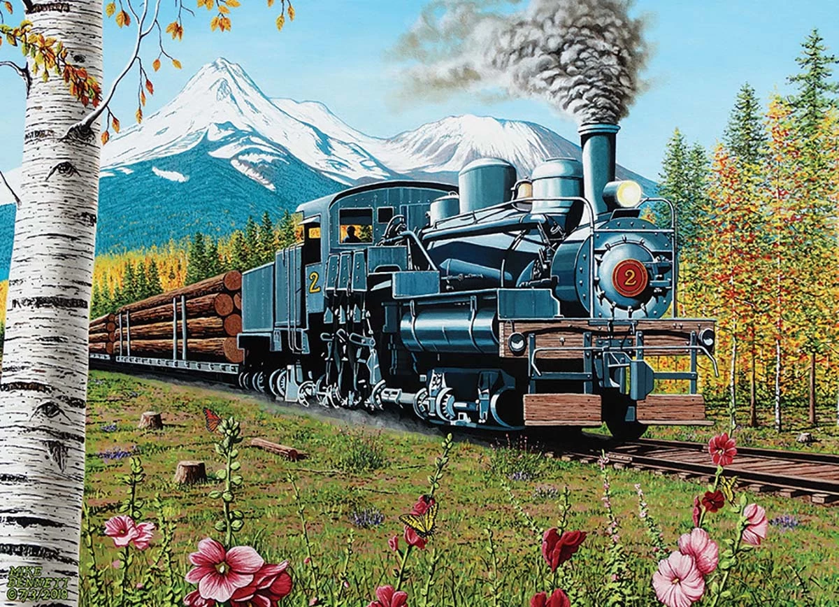 The logs are getting a great mountain view as steam train #2 goes Lumbering Along the tracks in this 1000 piece puzzle.