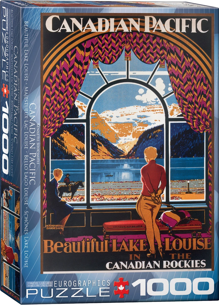 Two young women are utterly transfixed with the majesty of Lake Louise just outside their window, in this 1000 piece jigsaw puzzle from Eurographics. ย As you assemble this puzzle, you too will find yourself entranced with its nostalgic beauty. Finished size: 19.25″ x 26.5″.