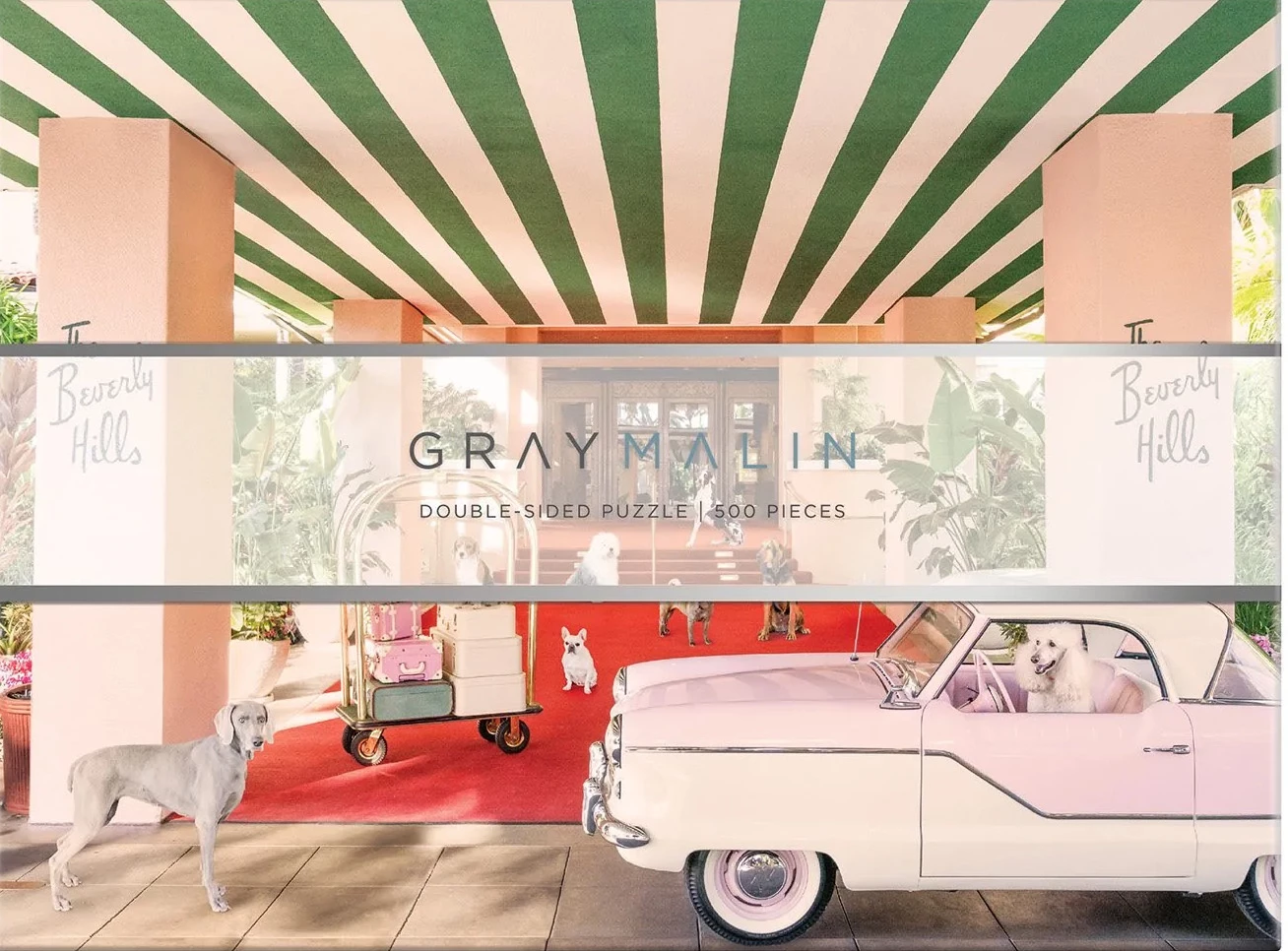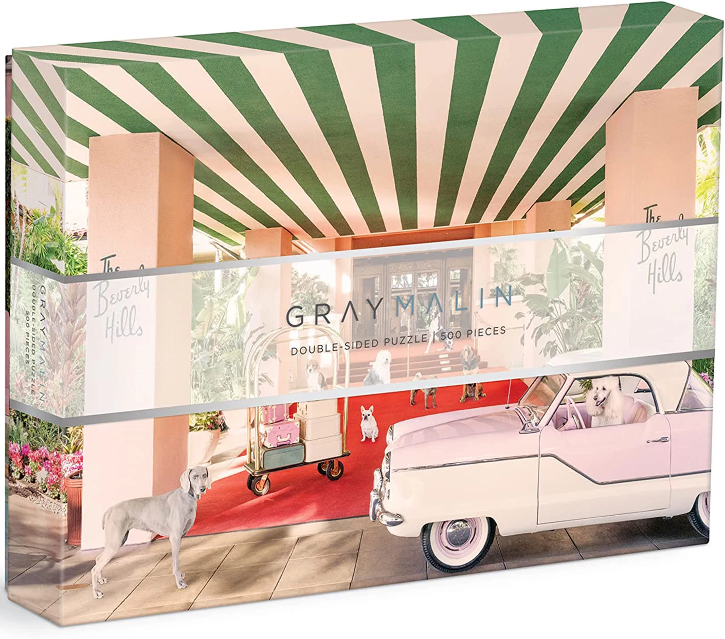 This two-sided 500 piece puzzle features two best-selling images from Gray’s playful series Dogs at The Beverly Hills Hotel. Gray Malin puzzles are the perfect gift for puzzle and fine art photography enthusiasts alike. Galison puzzles are packaged in matte-finish sturdy boxes, perfect for gifting, reuse, and storage.