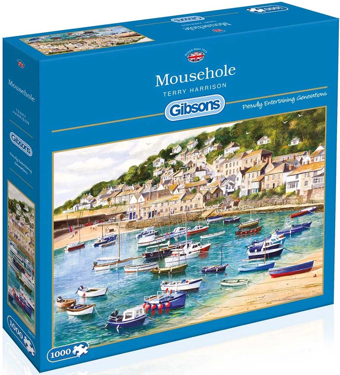 The beauty of the charming fishing village of Mousehole delights the many thousands of visitors that love Cornwall. Nestling on the south coast, on the shore of Mounts Bay, it offers an array of shops, pubs and restaurants for all tastes. Amongst the many chapters in its proud history is the night of 19th December 1981, when the Penlee lifeboat put out in hurricane force winds and capsized with the loss of all on-board. The old slipway at Penlee Point is preserved as a memorial. Beautifully painted by artist Terry Harrison, this 1, 000 piece puzzle is made from the highest quality 100% recycled board and is therefore a pleasure to handle again and again.