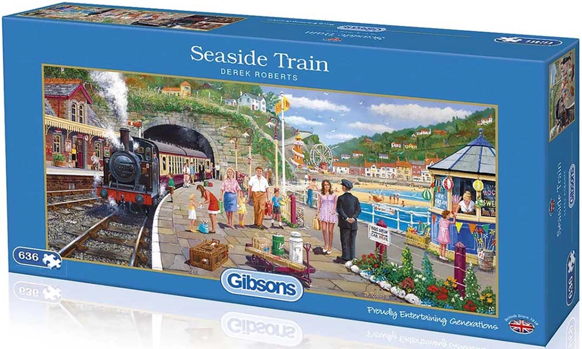 All aboard! As the seaside train pulls into the station, the holidaymakers are ready to hit the beach and visit the funfair.