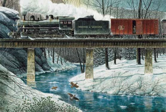 This puzzles features a Norfolk and Western train crossing over the New River.