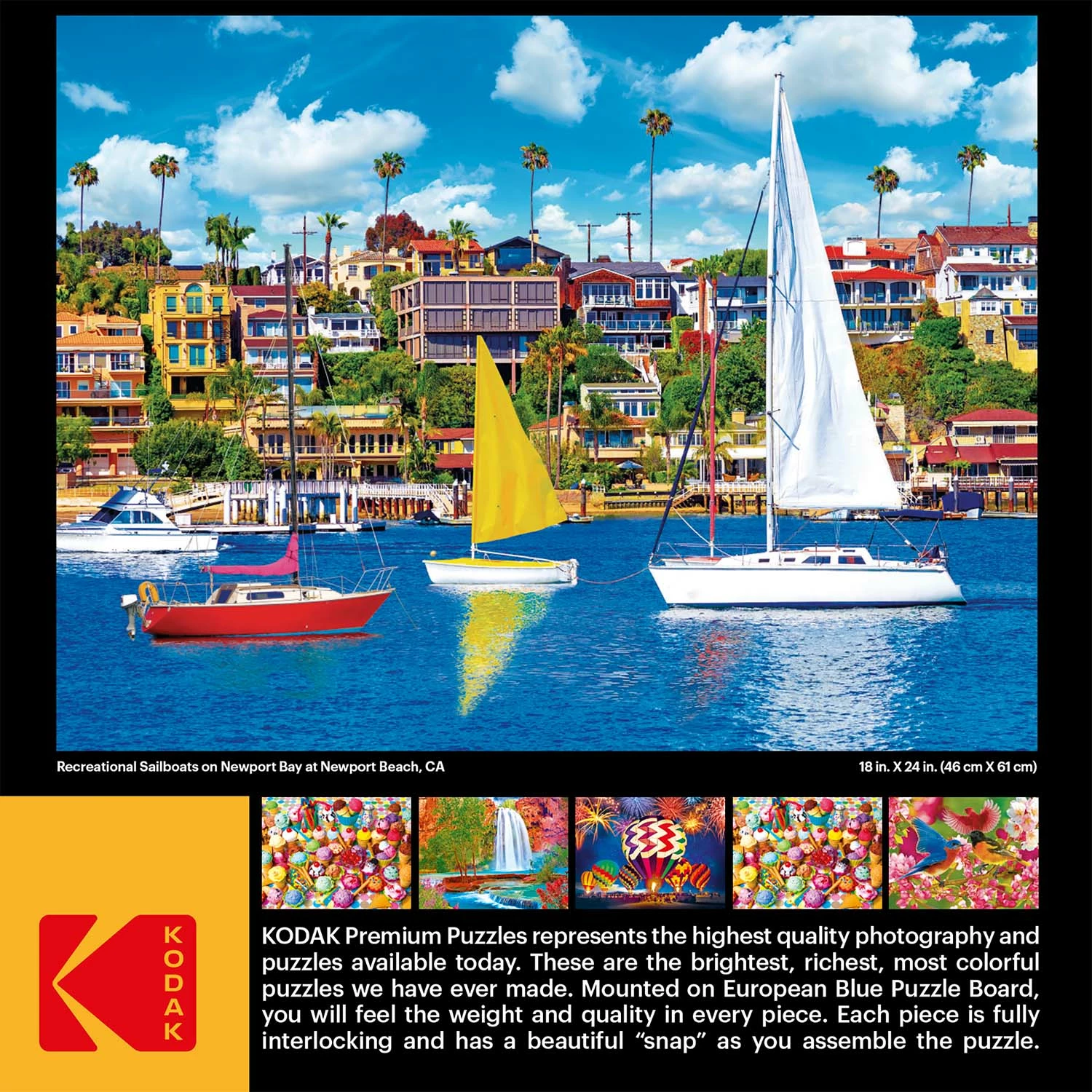 Kodak Premium Puzzles feature thick pieces using European Blue Board. ย Kodak is also known for its high quality photographic reproductions and this puzzle is no exception. ย This puzzle feature rich, bright, sharp colors. ย Kodak has been one of the leading puzzle brands for more than 25 years. ย