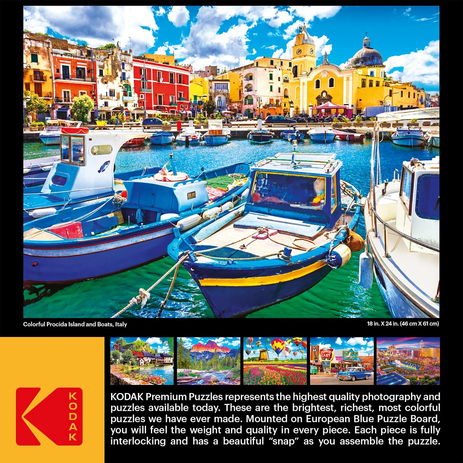 Kodak Premium Puzzles feature thick pieces using European Blue Board. Kodak is also known for its high quality photographic reproductions and this puzzle is no exception. This puzzle feature rich, bright, sharp colors in both the foreground and the back