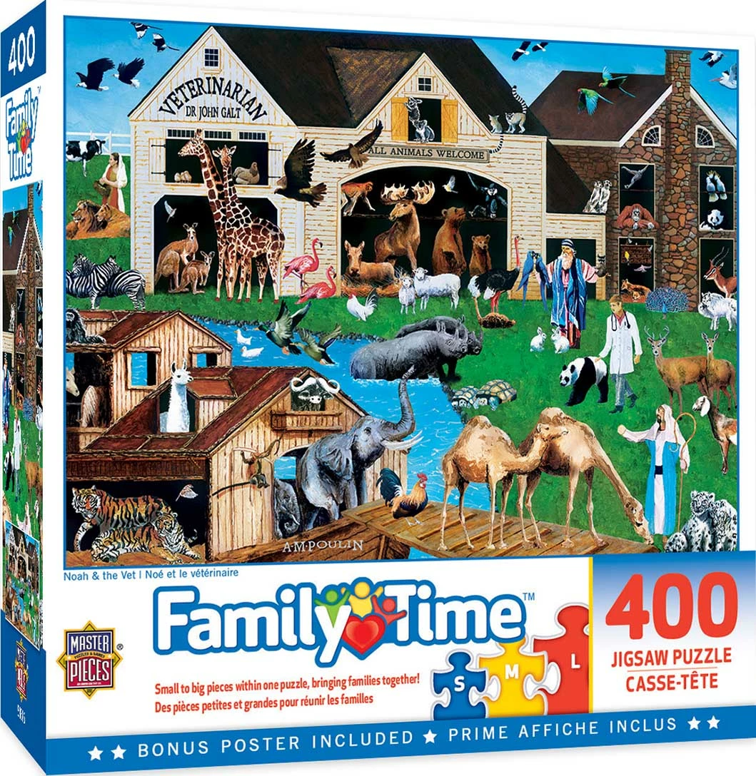 This 400pc Family Hour Collection are the perfect puzzles to enjoy with the family. Noah disembarks and the animals check in with the vet. This puzzles die was hand drawn to change from smaller to larger pieces across the puzzle. A variety of puzzle piece sizes are included so that there is a section for everyone. With three variations in piece sizes, it will be fun for everyone!