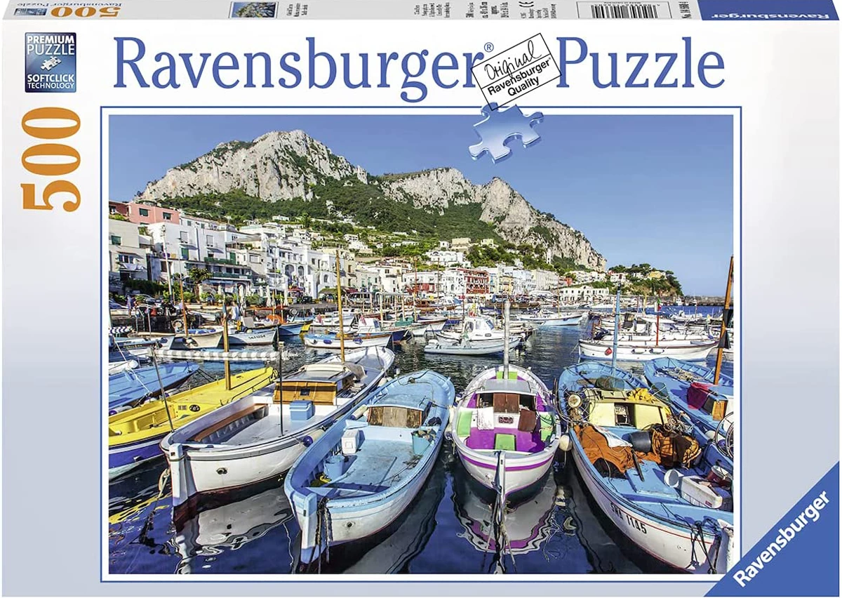 This 500-piece puzzle by Ravensburger will have you longing to go on a leisurely boat ride in the marina. Completed puzzle measures 19.5″ x 14.25″.