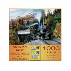 A train makes its way through the mountainside in βAutumn Mistβ from SunsOut. This 1000 piece puzzle features the breathtaking art of Kevin Daniel. This is a great puzzle for any train lover. The completed puzzle will measure 19β x 30β.