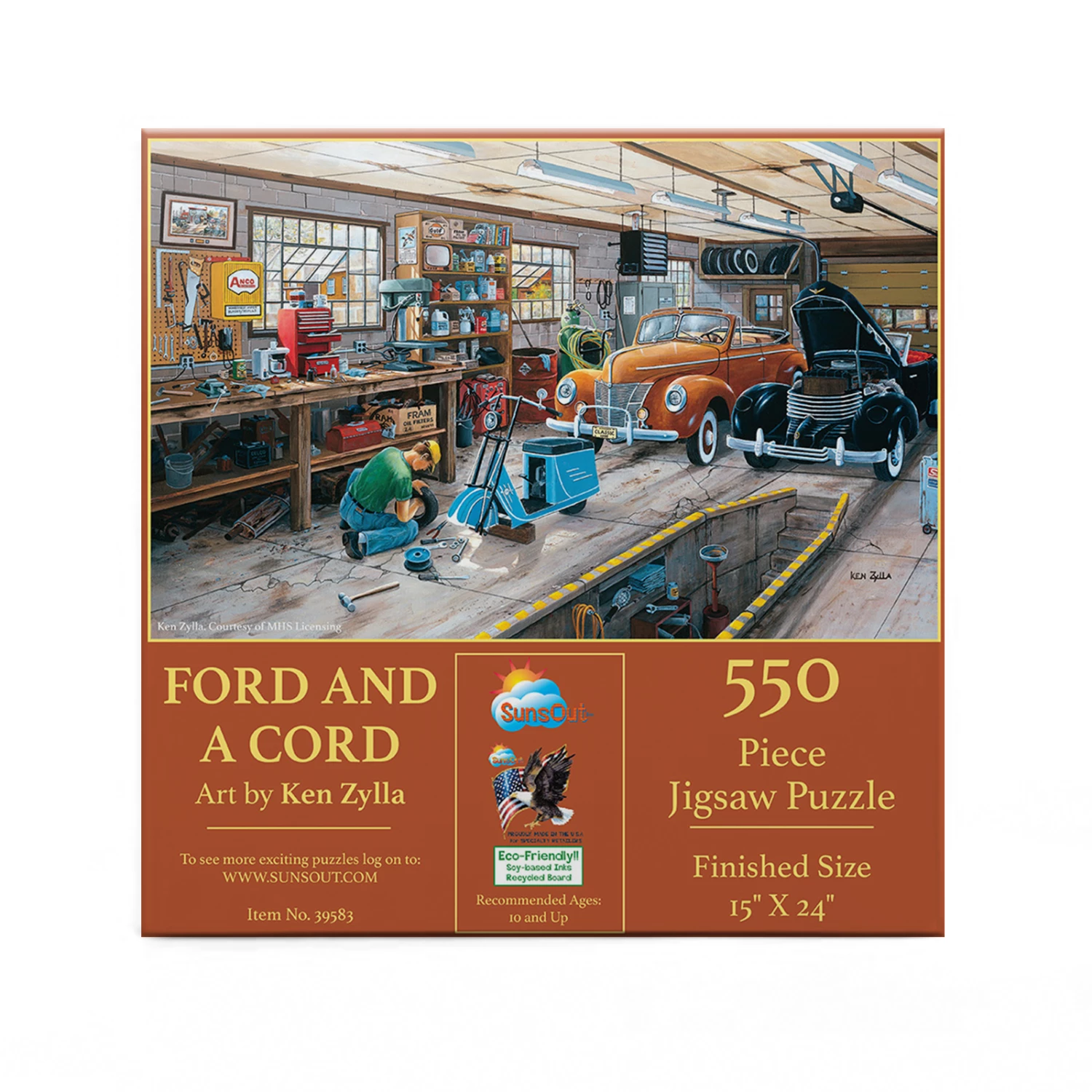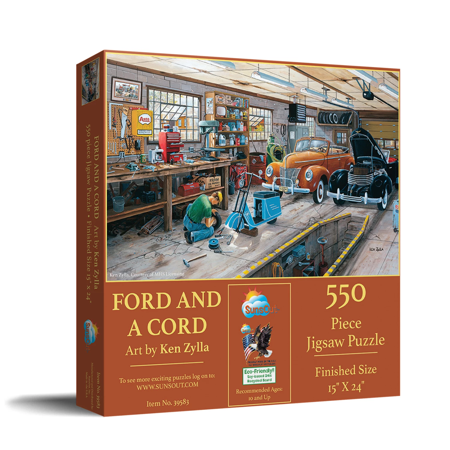 Piece together a day in the shop with this 550 piece puzzle from SunsOut. Artist Ken Zylla has illustrated the perfect garage with all the tools and equipment required to restore these beautiful cars. The finished puzzle will measure 15โ x 24โ.