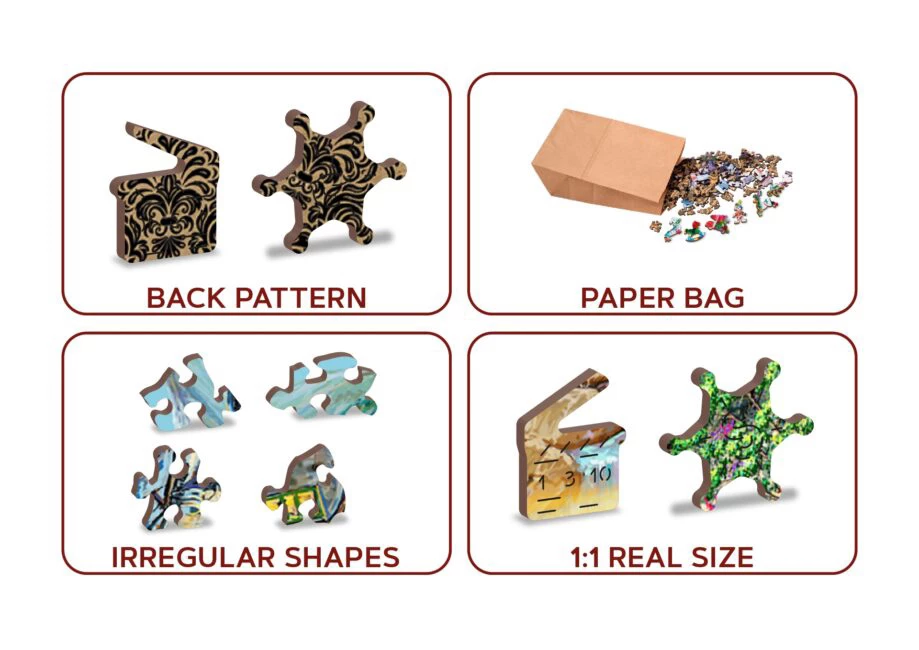 Launched with an eco-friendly, ecology first mindset, Wooden City puzzles combine the enjoyment of a high quality, double-sided wooden jigsaw puzzle with the magic of whimsical, non-traditionally shaped pieces. Β Discover how each one-of-a-kind puzzle is a story and adventure that will carry your imagination away. Each puzzle contains numerous unique shapes, characters, figures, and symbols that are cut seamlessly into the pattern. Β Think of these as mysterious little surprises each puzzle experience offers. These puzzles offer a high quality, rich beautiful image on the front and a detailed wallpaper style pattern on the back. Β Wooden City double-sided wooden puzzles offer a unique building experience that is sure to captivate puzzle enthusiasts of all ages. Avoiding plastic shrink wrap, Wooden City puzzles incorporate all natural cardboard and environmentally-friendly packaging. Β The material used in production is a high-density fiberboard (HDF) made of natural wood fibers. Β All puzzles are made of 100% child-safe materials and offer a challenging experience for puzzle builders of all skill levels.Β