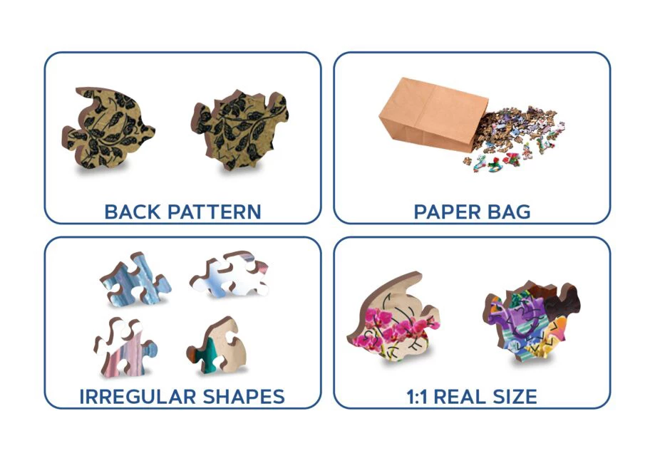 Launched with an eco-friendly, ecology first mindset, Wooden City puzzles combine the enjoyment of a high quality, double-sided wooden jigsaw puzzle with the magic of whimsical, non-traditionally shaped pieces. Β Discover how each one-of-a-kind puzzle is a story and adventure that will carry your imagination away. Each puzzle contains numerous unique shapes, characters, figures, and symbols that are cut seamlessly into the pattern. Β Think of these as mysterious little surprises each puzzle experience offers. These puzzles offer a high quality, rich beautiful image on the front and a detailed wallpaper style pattern on the back. Β Wooden City double-sided wooden puzzles offer a unique building experience that is sure to captivate puzzle enthusiasts of all ages. Avoiding plastic shrink wrap, Wooden City puzzles incorporate all natural cardboard and environmentally-friendly packaging. Β The material used in production is a high-density fiberboard (HDF) made of natural wood fibers. Β All puzzles are made of 100% child-safe materials and offer a challenging experience for puzzle builders of all skill levels.Β